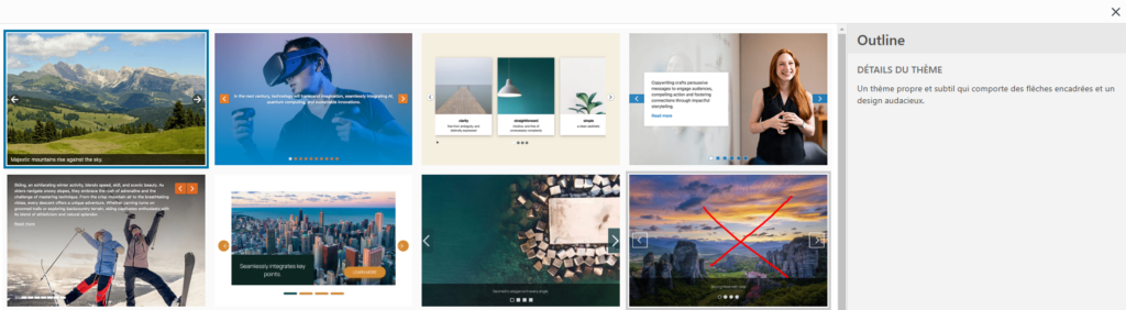 - Sélectionner le thème « Outline » (cf. 2e image ci-dessous)