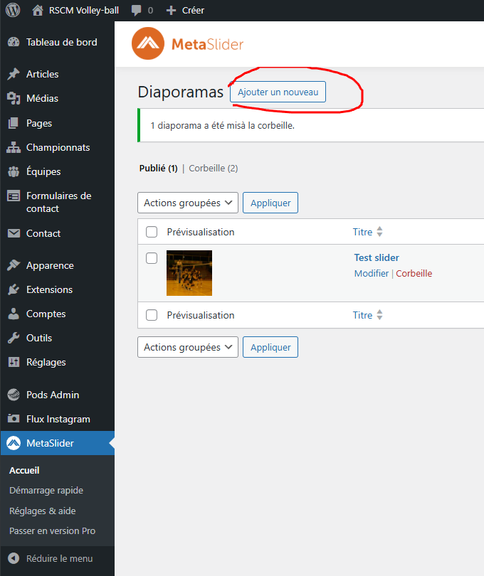 - Aller dans la partie « MetaSlider » du menu d’administration